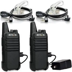 Retevis RT22 Walkie Talkies, Mini 2 Way Radio Rechargeable, VOX Handsfree, Portable, Two-Way Radios Long Range with Earpiece, for Family Road Trip Camping Hiking Skiing(2 Pack, Black)