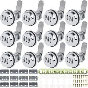 12 Pack Combination Cam Lock 1-1/8" Cylinder Coded Cabinet Security Lock - Metal Bright Chrome Password for Drawers