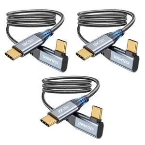 ZeroneTeck 8K/4K USB C Monitor Cable Right Angle [3-Pack 5FT], USB 4 Cable 40Gbps High Speed Data Transfer 90 Degree, 240W PD Fast Charging for MacBook Pro, iPad, iPhone 17/16/15, SSD, , HP,Dell