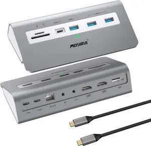USB C Laptop Docking Station Dual Monitor,Mosirui 14 in1 USB Hub Multiport Adapter with Dual 4K HDMI+DisplayPort,10Gbps USB A/C 3.1 and 2 USB 3.0,100W PD,Laptop Dock for/HP/Windows/Mac