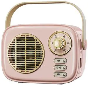 Retro Bluetooth Speaker, Wireless Mini Portable Speakers Vintage Radio Support USB/TF Card/AUX, Cute Bluetooth Speaker for Kitchen Desk Bedroom Office, Birthday Gifts for Women Teenage, Pink