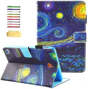 UUcovers Kindle Fire HD 8 Tablet Case 8th/7th/6th Generation 8" (2018/2017/2016) with Stand/Pencil Holder/Pockets/PU Leather Smart [Auto Wake/Sleep] Folio Magnetic Wallet Cover, Van Gogh Starry Night