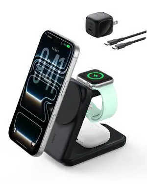 • Compatibility: For Apple Phone:iPhone 17, iPhone 17 Air,iPhone 17 Pro, iPhone 17 Pro Max;iPhone 16, iPhone 16 Plus, iPhone 16 Pro, iPhone 16 Pro Max; iPhone 15, iPhone 15 Plus; iPhone 14, iPhone 14 Plus, iPhone 14 Pro, iPhone 14 Pro Max; iPhone 13, iPhone 13 Pro, iPhone 13 Pro Max; iPhone 12, iPhone 12 Pro, iPhone 12 Pro Max;iPhone 11 X 9 8 series(need magnetic magsafe phone case), For Apple Watch:iWatch S10/9/8/7/6/5/4/3/2/SE/Ultra/Ultra 2(ONLY for Apple Watch), For Airpods:For AirPods 4/3/2/Pro/Pro 2(Note: Airpods 4/3/2 requires a wireless charging case), Magnetic, Magsafe Compatible, Fast Charging, Wireless Charging, Multi Device Charging