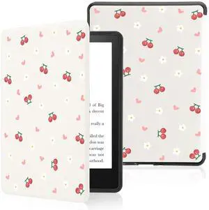 Cute Cherry Daisy Case for 6" Kindle (11th Gen,2024&2022) with Hand Strap,Compatible with MagSafe for Wireless Charging,Sleep/Wake,Soft Silm Fit Leather Cover for Kindle