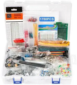 Electronic Component Kit, 1780 Pcs DIY Electronics Kit with Resistors,Capacitor,LED Diodes,Transistors,Dupont Wire,Breadboard,PCB,Potentiometer,Triode,IC,Crystal Oscillator,Buzzer,Switch,Motor,Speaker