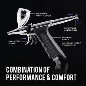 Gaahleri Airbrush Kit, Airbrush Gun Dual Action Gravity Feed Set, 0.38 & 0.5mm Needles, 1/2 & 1/4 OZ Fluid Cup, Multi-Purpose Air Brush Makeup Model Coloring Painting Nail Art Tattoo