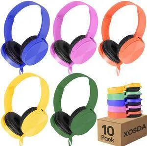Classroom Headphones Bulk 10 Pack Multi Color for Kids School Students, Wholesale Class Set Durable Earphones for Children Toddler Teens Boys Girls Adult Chromebooks Laptop Computer(LS450, 10 Mixed)