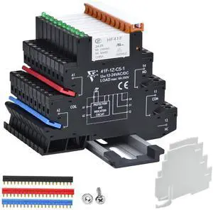 (8 Pcs) 24V Relay Din Rail; Miniature Power Relay; Silm; Signal Relay for PLC; 24VDC and 24VAC Both; 5 Pin SPDT with LED Indicator, Socket Base; Max 6A 250VAC