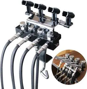 Airbrush Holder Stand Station Set with 5 Strips of Air Hoses, 4-Way Adjustable Airbrush Splitters Manifold, Airbrush Holder Clamp can Hold Up to 4 Airbrushes