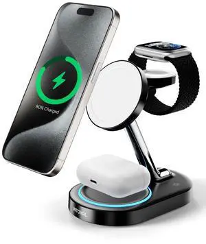 Compatibility: For iPhone: iPhone 17/ Air/ 16 / 15 / 14 / 13 / 12 Series, For Apple Watch: Apple Watch Ultra / Apple Watch Series 1-11 / Apple Watch SE, For AirPods: AirPods Pro / AirPods 4 / 3 / 2 (With Wireless Charging Case), Wireless Charging, Fast Charging, Magsafe Compatible, Charging Indicator