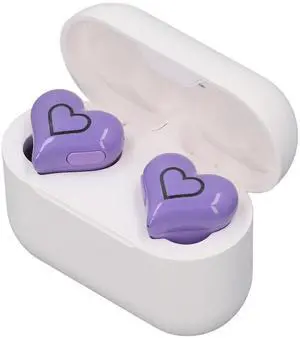 EBTOOLS Cordless Earbuds, Heart Shaped Noise Canceling Earphones with HiFi Stereo, Built in Mic, Colorful Lights Bluetooth 5.3 Earbud for Present, Phone (Violet)