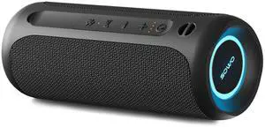 D320 40W Bluetooth Speaker, IPX7 Waterproof Portable Speaker with Dual Voice Coil, Customized EQ APP, 360 Sound, Party Lights, V5.3, TF/AUX, Black