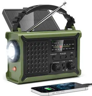 Emergency Hand Crank Radio 7400mWh with 3 LED Flashlight, AM/FM/NOAA Portable Weather Radio with Rechargeable 2000mAh Battery, Solar Powered Radio for Indoor Outdoor Survival Camping, SOS Alarm