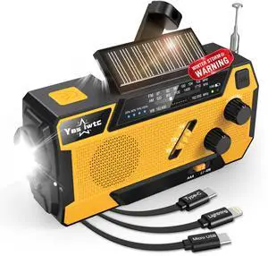 12000mAh/44400mWh Emergency Radio-NOAA Approved Weather Radio with AM/FM Portable Solar Panel/Hand Crank/AC Input Rechargeable Battery and Flashlight SOS Siren Lamp for Indoor/Outdoor Emergencies