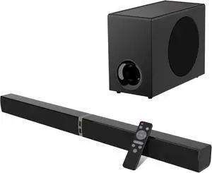 2.1 Channel Sound Bar with Wired Subwoofer, Dorby Audio 35in Detachable TV Soundbar, Bluetooth, HDMI-ARC, Optical, AUX, USB, FM, Coaxial Inputs for Home Theater