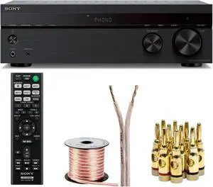 Sony STRDH190 2-ch Stereo Receiver with Phono Inputs and Bluetooth Bundle with 100ft of Speaker Wire and 5 Pairs of Banana Plugs (3 Items)