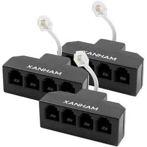 Cable 4 Way Splitter (3 Pack) 6P4C Connector Phone Line Cord Adapter with 3 inch Cable for Landline Telephone Wire, Black