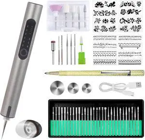 USB Rechargeable Engraving Pen with LED Light, Mini Engraver Pen for All Materials, Portable Engraving Pen with 35 Bits and 16 Stencils for Glass Wood Metal Ceramic