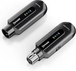 Wireless Microphone Transmitter Receiver 2.4GHz, Wireless Microphone Adapter Rechargeable XLR Transmitter Receiver for Mixer PA Speaker DSLR Camera, 48V Phantom Power for Condenser Mic