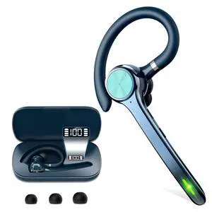 Bluetooth Headset, Wireless Bluetooth Earpiece with 500mAh Charging Case 72 Hours Talking Time Built-in Microphone for iOS Android Cell Phone, Hand-Free Headphones for Trucker, Office-Blue