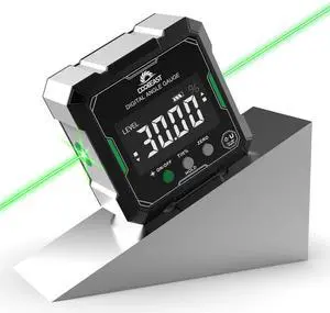 3-in-1 Multi Surface Laser Level with Digital Angle Gauge Magnetic, Rechargeable Digital Level with Wall Mount Base, 0-90° & 0-180°, Angle Finder Cross Line for Woodwork, Saw, Hanging Frames