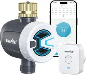WiFi Water Timer, Sprinkler Timer for Garden Hose, Smart Automatic Irrigation System with Brass Inlet for Yard, Lawn, APP Remote Control via 2.4Ghz WiFi and Bluetooth