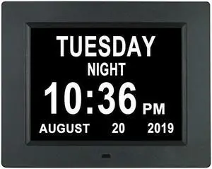 Options Digital Day Calendar Clock NonAbbreviations Day and Date 8 Alarm Options Battery Backup Dementia Alzheimer Impaired Vision Memory Loss Clocks for Senior Elderly