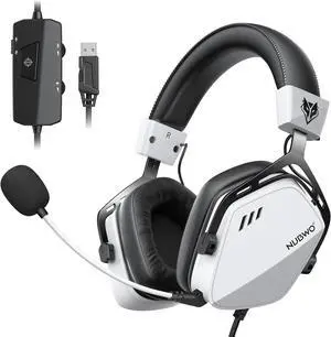 NUBWO HG03 USB-A Gaming Headset with 7.1 Surround and FPS Sound, Wired Headphones with Noise Canceling Mic, Comfortable Design for PC, Laptop - White