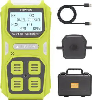Guard-156 4 Gas Monitor Multi Gas Detector for H2S, CO, LEL, and O2, Triple Alarm Modes (Visual, Vibration, Sound), 0.5s Fast Response, Dust and Explosion Proof Design for Work and Home Safety - Green