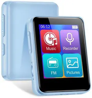 32GB MP3 Player with Bluetooth, 1.8 inch Screen, with FM Radio, Recorder, Portable Sport HiFi Music Player Up to 512GB, Blue