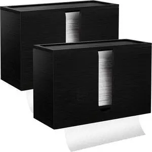 2PCS Bamboo Paper Towel Dispenser, Black Paper Towel Holder with Lids Wall Mount or Countertop for Multifold, C Fold, Z fold, Trifold Hand Towels Napkin Holder for Bathroom Toilet and Kitchen