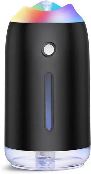 Portable Car Humidifier 310ml Mini Humidifier Super Quiet Cool Mist Humidifiers USB Personal Desktop Colorful Night Light Humidifier (2 in 1) for Car Office Travel Baby Home Bedroom Small Humidifiers