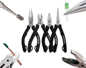 4-PC 5" Precision Mini Pliers Set ESD Safe Grip. Made in Japan: Screw Extractor, Long Nose, Needle Nose Pliers & Flush Cutters. For Electronic Repairs/Precision Work/Jewelry/DIY.