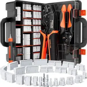 Mini-Fit Jr Connector Crimping Tool Kit, 2-24 Pin 4.2mm Connectors Set, 16-24 AWG Pins, Pin Extractor, Crimper & Stripper, Compatible with Molex, for PC Power, ATX, GPU PCIe, 3D Printer & DIY