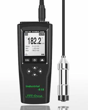 Coating Thickness Gauge Industrial-818 with External Probe 0197 mil (05000m) Fe / 0120 mil (03000m) NFe, 0.001 mil Resolution, Factory/Zero/Multi-Point Calibration, Memory, PC Connectivity