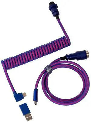 Keychron Premium Coiled USB-C Angled Purple Cable, 5-Pin GX16 Detachable Metal Connector, USB-A Adapter, Double-Sleeved Design, for Mechanical Keyboards, Charging and Data Sync