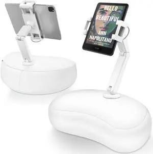 AboveTEK Tablet Pillow Stand for Bed, Hands-Free 360 Adjustable iPad Pillow Holder for Lap Reading w/Soft Bean Bag, Ideal Gift for Mom, Fits 4.7" to 12.9" Tablet, Phone, Kindle, White