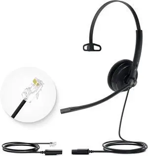 Yealink Phone Headsets for Office Phones YHS34 Lite QD to RJ9 Wired Headset Compatible with Poly Snom Grandstream Phones Desk Landline Headset with Microphone -Mono/68g/2.1m Cable
