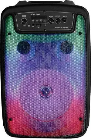 IQ Sound IQ-7008DJBT 8-Inch Portable Bluetooth Speaker Unleash dynamic sound with TWS Technology, LED Light Show, Multiple Inputs, FM Radio, Mic and rechargeable battery - Perfect for any event.