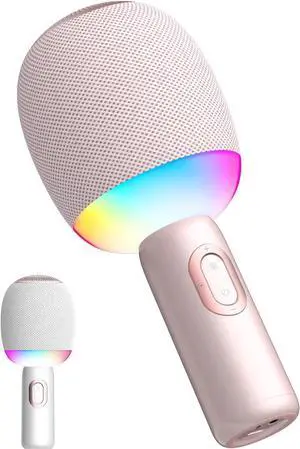 Wireless Bluetooth Karaoke Microphone, 5-in-1 Portable Handheld Mic Speaker with Dynamic Lights, Karaoke Microfono for Car Travel Home Party, Music Record, Duet Singing Gifts for Adults Kids (Pink)