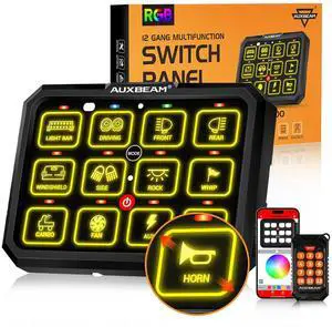Auxbeam RGB 12 Gang Bluetooth Switch Panel AC-1200 w/165FT Long Range 433MHz Wireless Remote Control, Auto-Dimmable Panel w/Toggle Momentary Pulsed, Unique Patented Design Switch Pod Waterproof