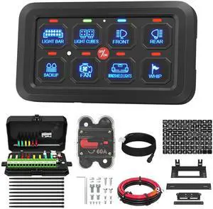 8 Gang Switch Panel RGB LED Lighted Multi-Function Switch Pod Toggle Momentary Pulsed Touch Control Switch Panel Dimmable for Car ATV UTV Boat Marine