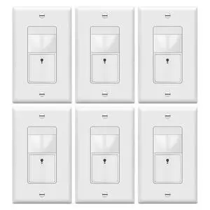Motion Sensor Light Switch, Occupancy & Vacancy Motion Sensor Switch, , No Neutral Wire, Single Pole, TDOS5-HL-W-6PCS, White