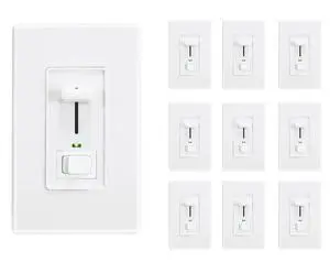 in Wall Dimmer Switch with Green Indicator, for LED Light/CFL/Incandescent,3-Way Single Pole Dimmable Slide,600 Watt max,Cover Plate Included,White,10 Pack