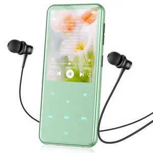 AGPTEK 64GB MP3 Player with Bluetooth, M3 2.4 inch Music Player with Speaker and FM Radio, Touch Buttons, Supports Up to 128GB (Green)