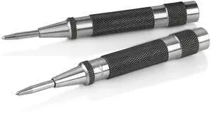 Heavy Duty Automatic Center Punch with Hardened Steel - Pack of 2 Premium Universal Metal Hand Tool for Machinists and Carpenters Spring Loaded with Adjustable Knurled Cap and Hard-Shell Carry Case