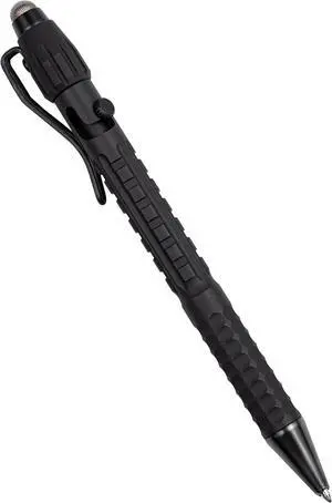 All-Weather Readiness Metal Tactical Pen with Stylus, Bolt-Action Clicker, Glass Breaking Tip, Black Ink, Made in the USA (No. AO50S)
