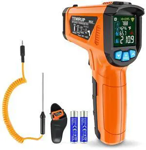 Infrared Thermometer Gun, Laser Thermometer Gun -402192(-401200),50:1 Non-Contact High Temp Thermometer with Thermocouple Probe,Color Backlight,Adjustable Emissivity,for Industry&Home