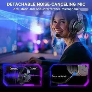 DIXSG Wireless Gaming Headset for PS5, Switch, PC, Bluetooth PS5 Headset with Microphone Noise Cancelling, Stereo Sound, 45H+ Battery, Black