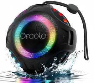 Oraolo Portable Bluetooth Speaker, Shower Speaker with RGB Lights, IPX7 Waterproof, Bluetooth 6.0, 10H Playtime, Hands-Free Calling, Wireless Outdoor Speaker for Pool, Kayak, Bike, Golf